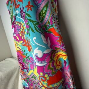 Pappagallo Multicolor Hawaiian Floral Sleeveless Sheath Dress XS. Quarter zip front, collar, sleeveless, sheath style. Measurements: 17" across chest, 17" across waist, 20" across hip, 36" long. 96% polyester, 4% elastane. Pre-owned in good condition.