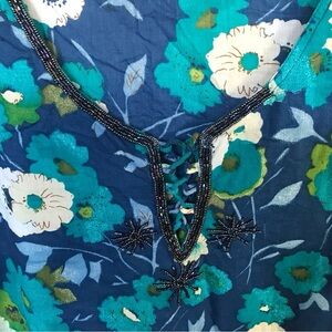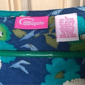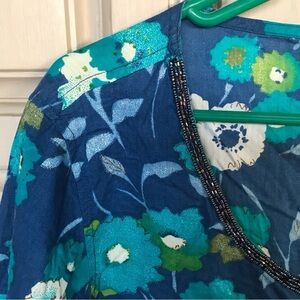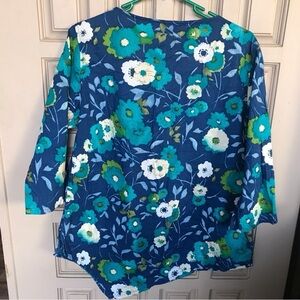 Papagallo Summer Teal Cotton Blouse Pullover 3/4 Sleeve SzL