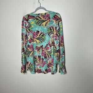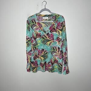 Papagallo Top Womens Large Green Colorful Floral Palm Hannah Resortwear V Neck