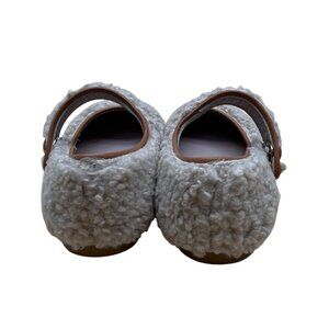Papanatas Girls Beige Shearling Strap Closure Flat Shoes Size US 7 EU 23- New