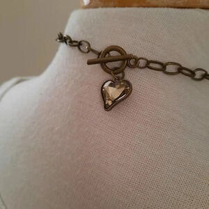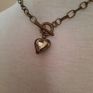 Antique brass color with yellow brown tone Faux gemstone heart charm