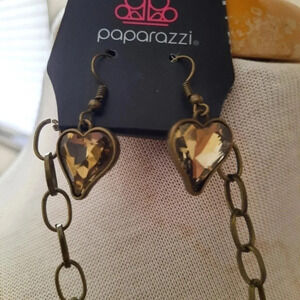 Paparazzi Antique Brass Heart Shaped Gemstone Link Necklace and Earring Set