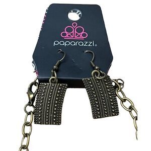 Paparazzi Bib Metal Layered Necklace Collar Earrings Set Tribal Brutalist NWT