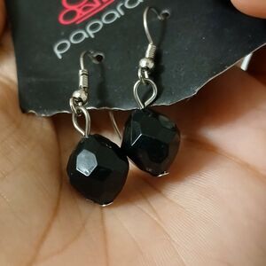 Paparazzi Black Beaded Faceted Sphere Dangle Drop Earrings