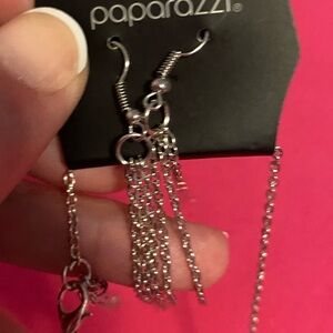 Chest level blue pendant and chai mail earrings to match. Paparazzi necklaces have a lobster claw clasp with a 2-3” extender. Avoid getting this jewelry wet and away from hairspray, colognes, perfumes, and lotions. This jewelry is lead and nickel free.