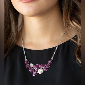 Paparazzi Breathtaking Brilliance Purple and Rhinestone Silver Chain Necklace