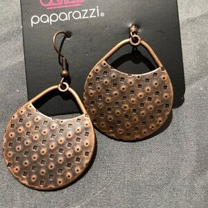 These stunning Paparazzi earrings feature a rich brown hue and a captivating textured design, making them a standout accessory. The earrings boast a unique pattern of raised dots, adding both visual and tactile interest. Perfect for making a bold fashion statement, these earrings are a must-have for any jewelry collection.