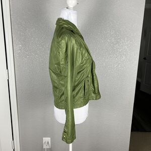 Paparazzi by Biz Nylon Moto Bomber Jacket Sz S Green Full Zip.