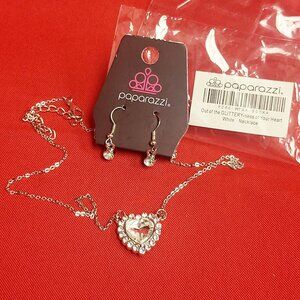 Paparazzi Earrings Necklace Set Out of the Glitteryness of Your Heart White