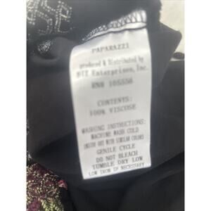 Elevate your wardrobe with the Paparazzi Embroidered Top, a tunic-style blouse that embodies a Bohemian spirit with a touch of sophistication. The black 100% cotton fabric is adorned with a delicate floral pattern, providing a relaxed fit that's perfect for any casual occasion. With 3/4 sleeves and a flattering V-neckline, this top offers a versatile piece for your collection, easily transitioning from business meetings to evening cocktails. Attention to detail is evident in the intricate embroidery and the blouse's lightweight viscose fabric ensures comfort for all seasons. Whether paired with your favorite jeans or dressed up for a party, this collarless top with its unique tie closure and slimming features is a go-to for an effortlessly chic look. Machine washable for easy care, this garment is as practical as it is stylish. Measurements include pit to pit 22" x length 27."