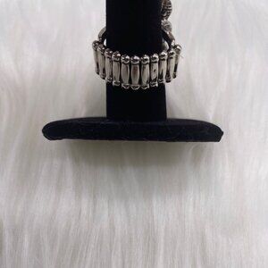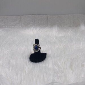 This Paparazzi "FairyTale Magic" ring features a captivating blue stone centerpiece accented by delicate silver details. Crafted with a stretchy band, it comfortably fits sizes 6-10, ensuring a secure and adaptable fit.