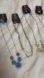 Chic floral designs in blue and yellow. Silver and gold chains add elegance. Perfect for any occasion.