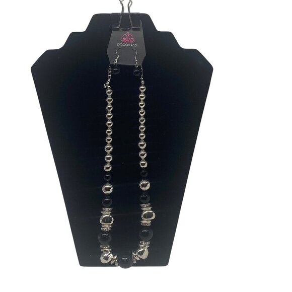 This Paparazzi Jewelry set includes a Hollywood Haute Spot Necklace in black and silver tones, paired with matching earrings. Crafted for lightweight, lead-free, and nickel-free wear.