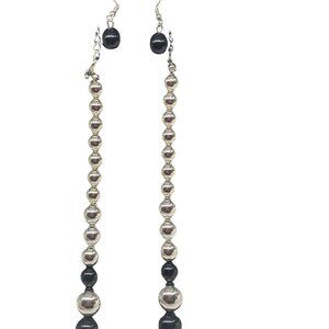 • Matching necklace and earrings in black and silver