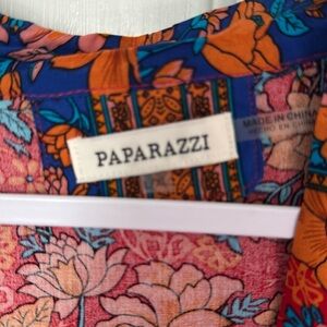 This relaxed blouse from Paparazzi features a vibrant red and blue color palette, perfect for adding a pop of color to your wardrobe. The tie front and 3/4 sleeves offer a stylish and comfortable fit, making it an ideal choice for casual outings or layering. Its flowy design and lightweight fabric ensure a breezy feel throughout the day.