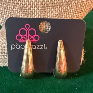 Stylish teardrop earrings with a shiny gold finish. Ideal for a chic look.