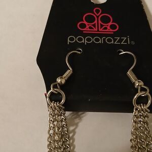 Paparazzi Silver Tone Chain Tassel Drop Dangle Hook Earrings