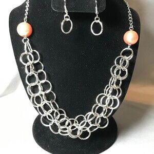 Paparazzi Silver Tone and Beaded Layered Link Necklace and Earrings Set