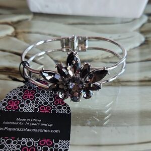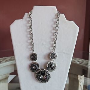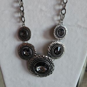 NWT Gorgeous Black and Silver Necklace and Bracelet Jewelry Bundle. The Necklace is Black and Silver with Black Stones and Silver chain links, the Bracelet is Chic Corsage Silver Bracelet.