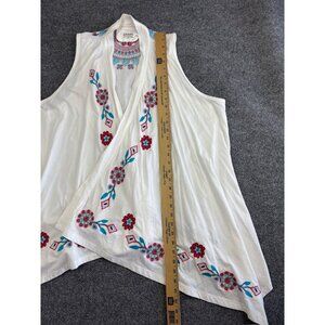 Paparazzi Sleeveless Cardigan Women's L White Blue Pink Floral Embroidered Vest
