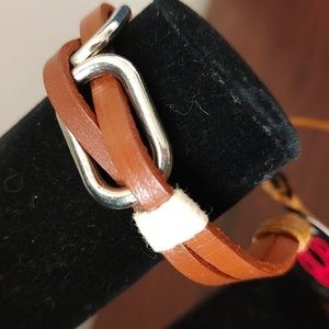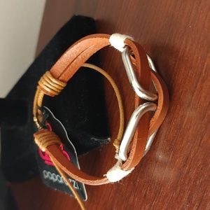 Paparazzi Tan Leather Adjustable Cord Bracelet with Silver and Cream Accents
