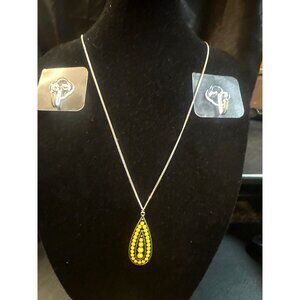 Paparazzi Teardrop Pendant Necklace & Earring Set With Yellow Stones
