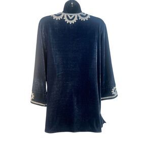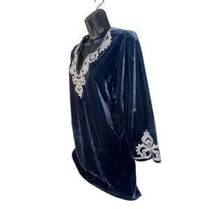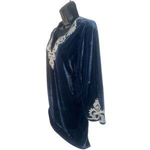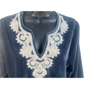 Paparazzi Velvet Blue Floral Womens Tunic Embroidered Boho sz M