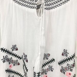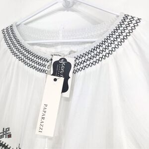 Paparazzi White Embroidered Ethnic Smock Neck Peasant Blouse