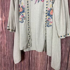 Paparazzi Womens Kimono Jacket Embroidered Open Front Beige Linen Blend Size XL