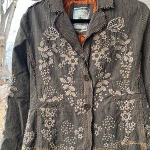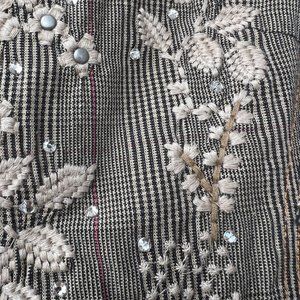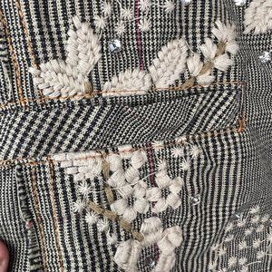Paparazzi by Biz Floral Embroidered, Studded Raw Seams Cotton Tweed Jack…