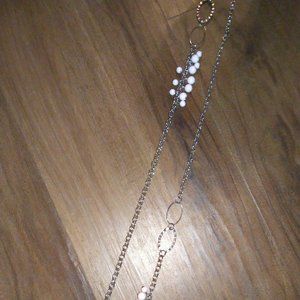 Paparazzi drop earrings necklace 20" 2 pc set ... price firm for 2 items in a set. Final sale. The long goldtone necklace with links - has cluster of beads and earrings wire drop to match. Giftable condition.
