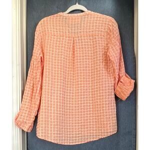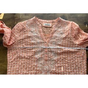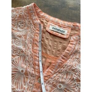 Paparzzi Womens Light Orange V Neck Roll-Up White Embroidery Detail Cottage