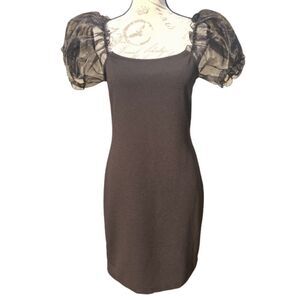 Papaya Bodycon Dress Mesh Puff Short Sleeve Large