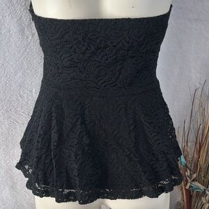 Papaya Black Lace Strapless Peplum Top with Beaded Waist - Size L