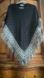 Stylish black poncho with intricate pattern and fringe. Perfect for a chic look.