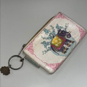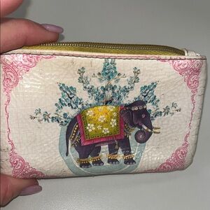 Charming coin purse with an elephant print. Features a mix of cream, pink, and blue colors. In preowned condition. Smoke and pet free home .