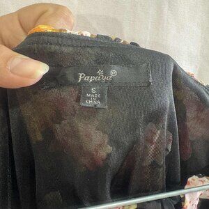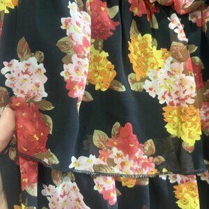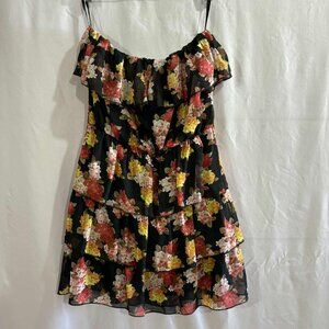 Papaya Floral Tiered Off Shoulder Mini Dress Size S – Black Ruffle Boho Summer D