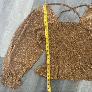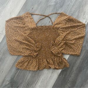 Floral Blouse Smocked Stretch Criss Cross Back Ruffles Preppy Feminine