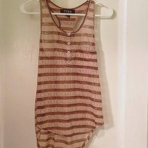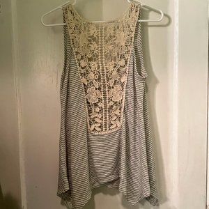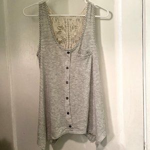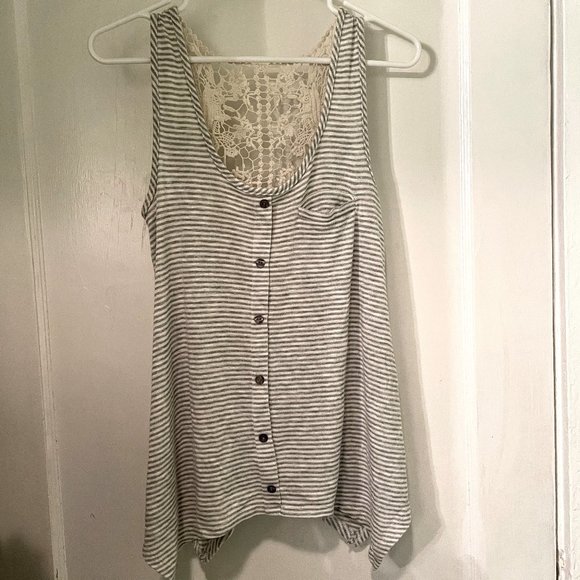 Papaya Grey/White Striped Tank Top w/Lace Back