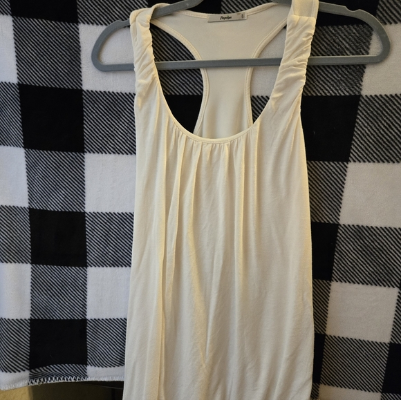 Stylish ivory tank by Papaya. Features a racerback design. Perfect for casual wear.