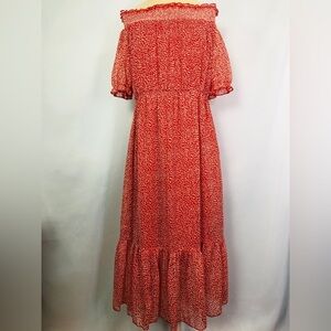Papaya Ladies Red White Dots Off Shoulder Lined Lightweight Dress Size 12