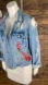 Papaya London Trend Distressed Denim Jean Jacket. Rose Appliqué Floral Embroidered Design.