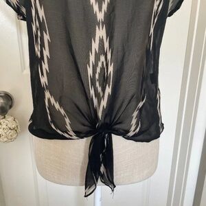 Papaya | Made In USA Black Sheer Lace Top with Embroidered Cream Back | Size M