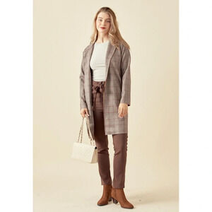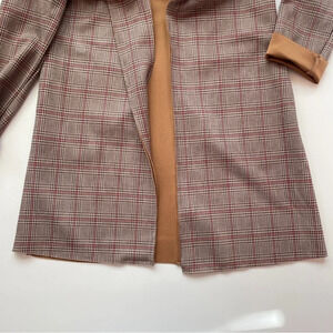 Papaya Plaid Open Front Tan Neutral Coat for Fall Size Medium