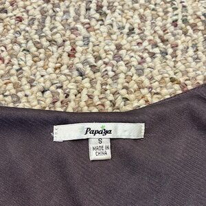 This stunning blouse by Papaya showcases an asymmetrical design with elegant ruffles cascading across the front. The deep purple hue adds a touch of sophistication, while the lightweight fabric ensures a comfortable fit. Perfect for a dressy occasion, this top is a statement piece that exudes femininity and style.