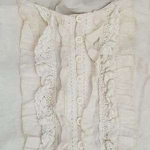 -Adorable cream colored racer back style tank with ruffle front button and crochet detailing