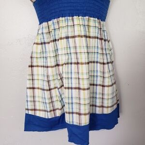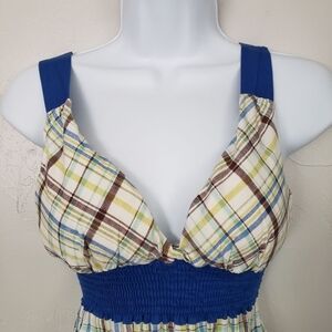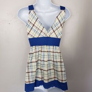 Papaya Small Tank Top Tunic Sleeveless Blouse Blue Brown Plaid V-neck Y2K Smock