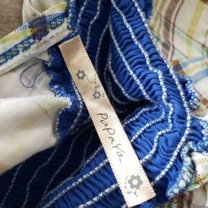 Blue straps, smocked waist, trim
