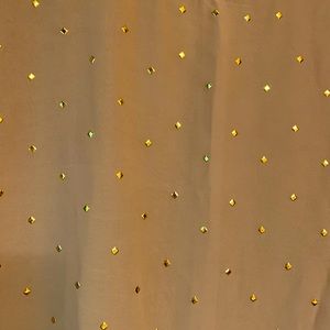 Very pretty sheer tan top that buttons up the back. Has cute gold embellishments in the front. It is 21 inches in length and 19 inches pit to pit. Size small. From smoke free home.