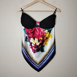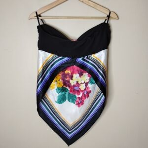 Papaya Strapless Satin Handkerchief Top L Floral Y2K Babydoll Festival